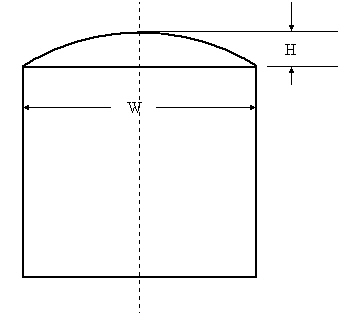 (19) The figure below represents a rectangular window with a circular arc above it. Write a code fragment that uses W and H (previously entered and stored in the double variables w and h, respectively) to compute the radius of the arc (to aid in laying out the arc on the wall), the arclength of the curved upper edge (to determine how much trim is needed) and the area of the arc (to use in heat-loss calculations). The units of H and W are consistent (i.e., the same).