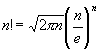 For instance, for n = 10 the above equation, known as the Stirling Formula, yields a value that is within 1% of the correct answer.